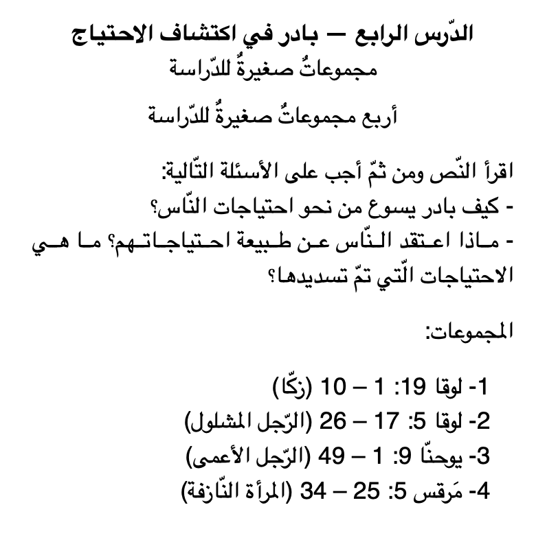 - ورقة العمل الرابعة – مجموعاتٌ صغيرةٌ للدّراسة الأولى.png 📥